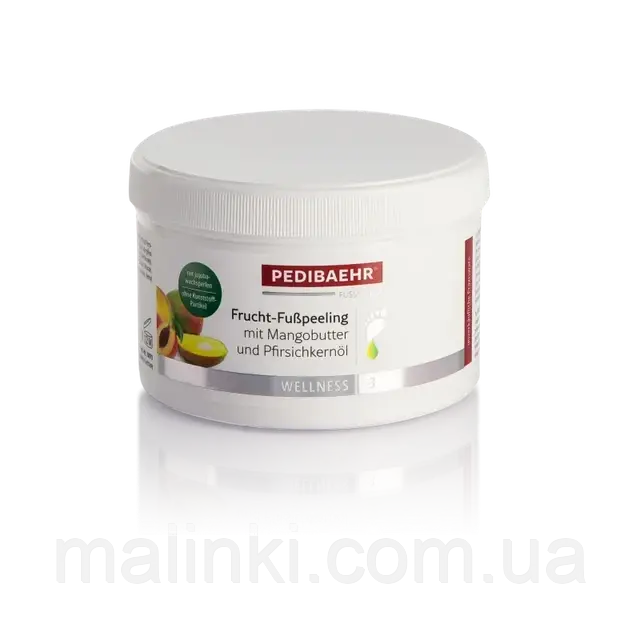 Скраб багатий на мінерали й амінокислоти, вітамін Е. Після скрабування шкіра стоп стає шовковистою, м'якою й оксамитовою. Рекомендується застосовувати в комплексі з фруктовим кремом лінії PediBAEHR.